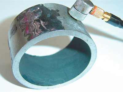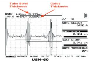 測試的目的是對鋼管壁和位于管內(nèi)徑上的氧化皮層進(jìn)行單獨的厚度測量。來自管-氧化物的界面回波比來自氧化物-空氣界面的回波小得多,因此,困難是將這兩個回波彼此分離并在兩個回波之間進(jìn)行測量。
