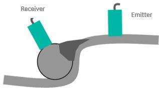 焊接工件的幾何形狀變化排除了使用脈沖回波法的可能,然而穿透法對(duì)于拉手連接金屬薄板幾何形狀的變化可以提供一個(gè)很好的解決方案。出于此類(lèi)檢測(cè)的目的,發(fā)射探頭通過(guò)磁性固定在工件表面發(fā)射導(dǎo)波,手動(dòng)操作,接受探頭接受反射回來(lái)穿過(guò)焊接接頭的回波。