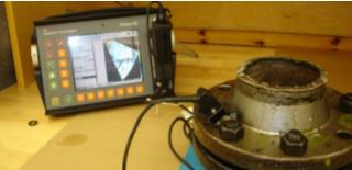 GE歐洲解決方案中心提出了使用相空陣phasor XS的解決方案,通過使用標(biāo)準(zhǔn)的或者定制的相控陣探頭,此解決方案提供了一個便攜式、重量輕人工相控陣操作系統(tǒng),可以輕松地適應(yīng)任何檢驗草案,根據(jù)客戶的要求,檢測演員可以從螺栓面或者錐形面任一面進(jìn)行檢測,顯示的扇形圖來自于腐蝕擴(kuò)展的評估和在基于風(fēng)險分析檢驗計劃中使用。這有助于用最小的成本對未來檢測提供一種規(guī)劃方案。