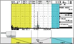 l彩條顯示可在焊縫檢測中輕松識別各條數(shù)據(jù)和跨距,區(qū)分一次,二次回波。