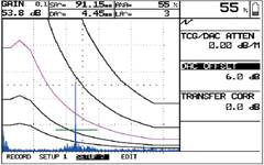 l40 DB動態(tài)多曲線DAC/TCG選項可修正材料衰減和波形發(fā)散引起的距離/振幅變化,并能單獨編輯或插入紀錄的回波。一次*多可在屏幕上畫出4條DAC曲線,從而在原始紀錄的DAC曲線外顯示+/- dB曲線?杉o錄多達16個數(shù)據(jù)點,每微秒*大的曲線斜度為12dB。符合或超過了TCG的工業(yè)要求。